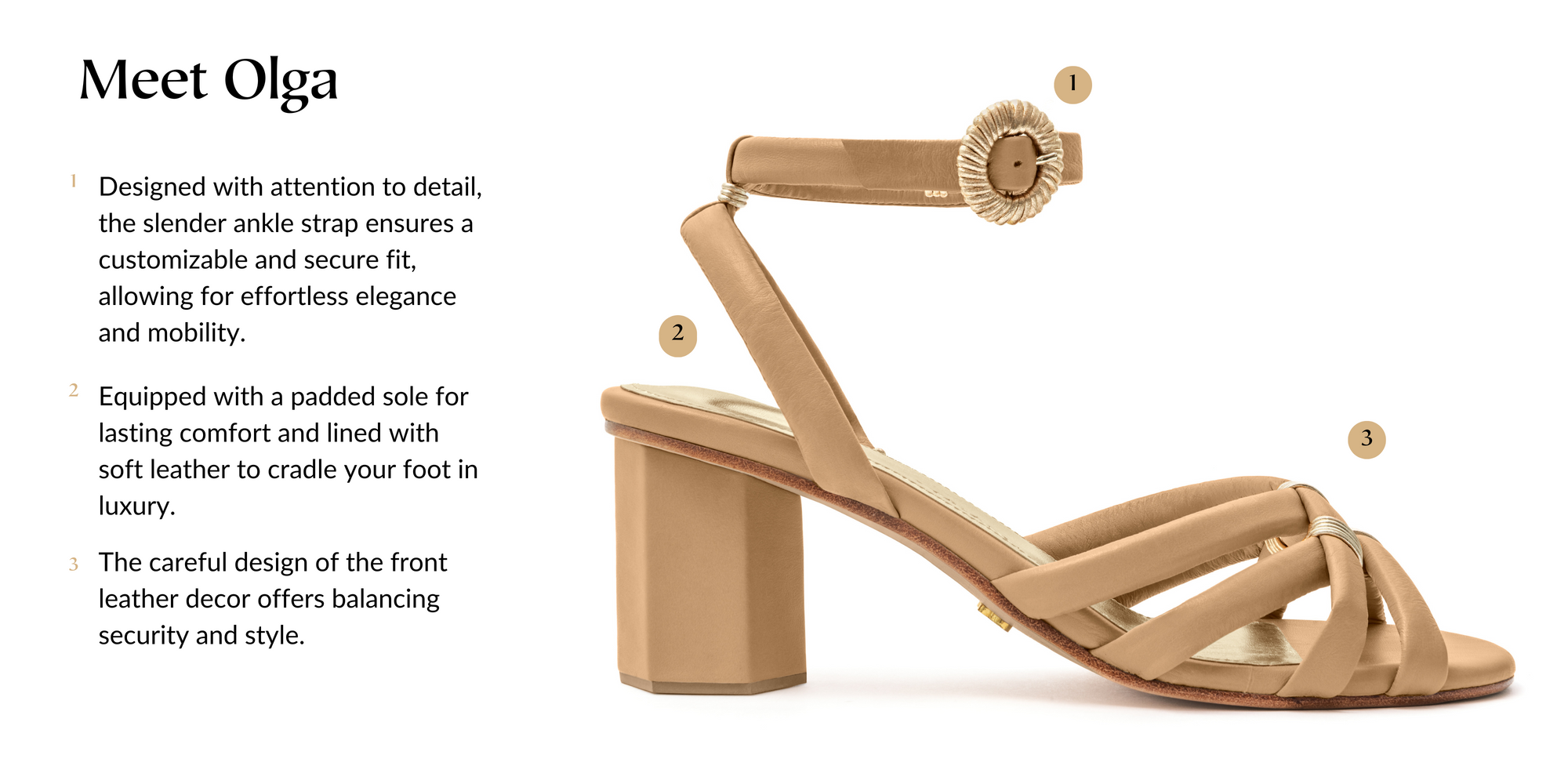 This sandal has a perfect fit for both wide and narrow feet. This heeled sandal is ideal for women who want to cover imperfections on their feet. The padded straps made of soft leather ensure that the foot feels secure without being harmed. Additionally, thanks to these leather straps, they adapt to both narrow and wide feet. Its adjustable ankle strap system fits all widths and makes the leg look super sexy. The thick heel guarantees absolute stability. All of our shoes have been tested by their creators and several of their collaborators to ensure functionality and fit. It comes true to size.